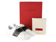 VALENTINO, SNEAKERS, Valentino Garavani Rockstud Untitled Sneakers, vit, svart kalvskinn, gummisula, guldfärgade nitar, stl 36½, sula 3 cm, märkt SWA1W0, made in Italy, extra skosnören, dustbag, kartong. Very Good Condition.