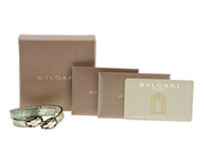 BVLGARI, ARMBAND, Doubel Serpenti Bracelet, grönt präglat läder, glittrig, guldfärgad metall, emalj, diameter 6 cm, bredd 1 cm, vikt 24,89 g, made in Italy, cert, ask. Good Condition.