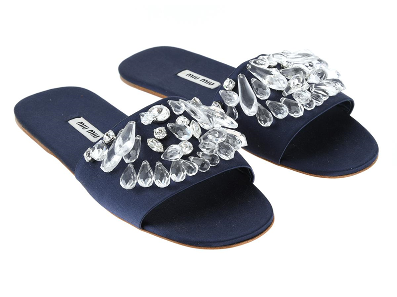 MIU MIU, SANDALER, Crystal Sandal, blå satin, strass, stl 38, made in Italy, dustbag. Excellent Condition.
