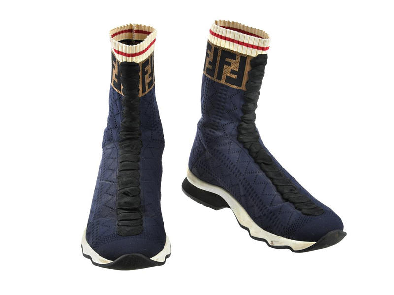 SKOR, FENDI, sneakers, marinblått tyg, logo FF, stl 38.
