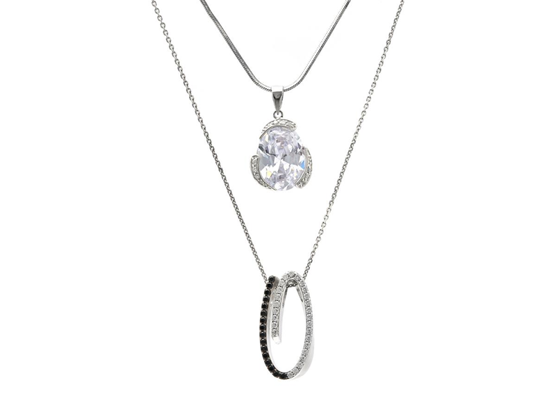 HÄNGE MED KEDJA, 2 stycken, sterlingsilver, cubic zirconia, glas, längd ca 37-44 cm, vikt 23,4 g.
