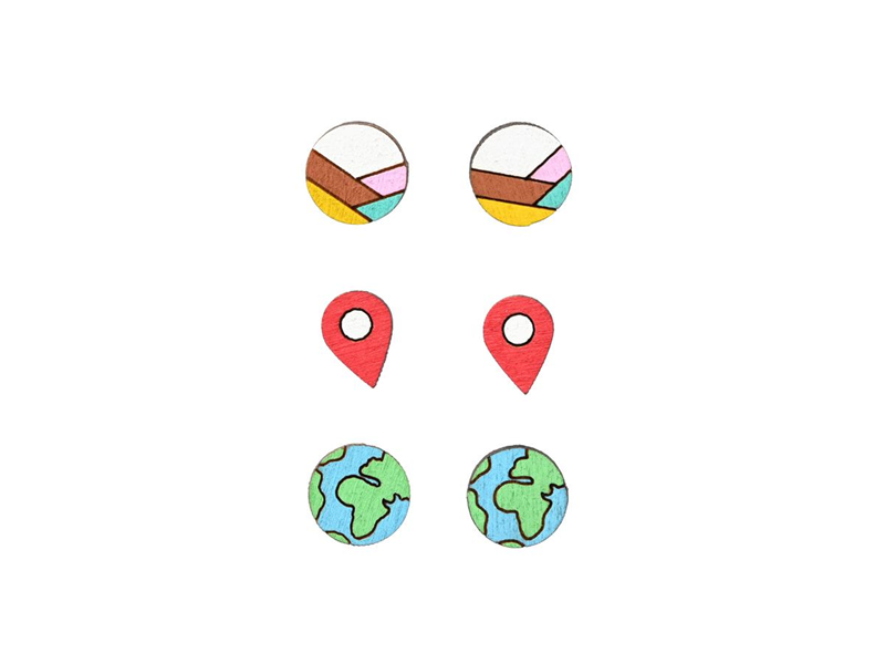 3 PAR ÖRHÄNGEN, trä, handmålade, bredd 12 mm, stift.