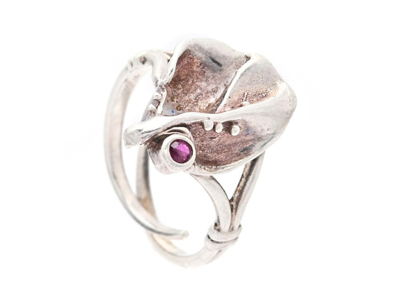 RING, sterlingsilver, granat, öppen justerbar skena, vikt 3,2 g.