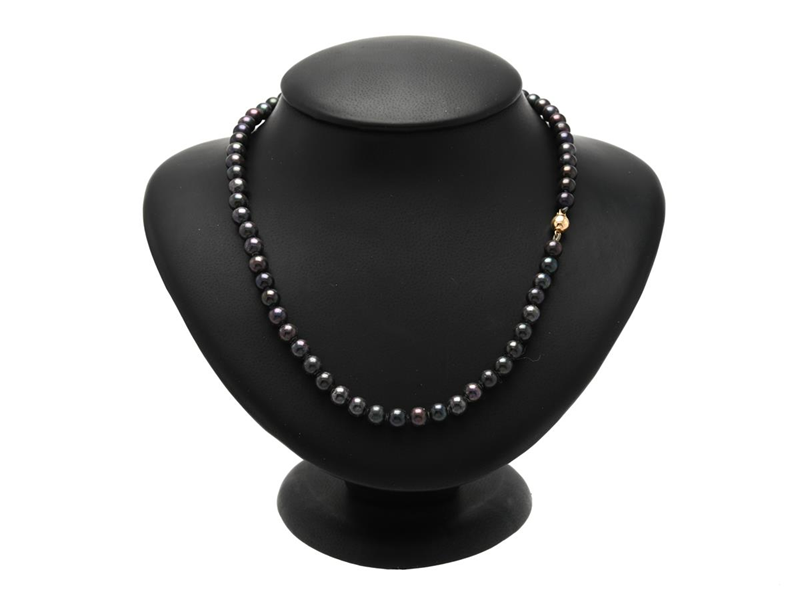 PÄRLCOLLIER, odlade färgade pärlor ca 6,0 mm, lås i 14K guld, längd 43 cm, vikt 23,1 g.