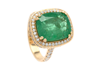 RING, 18K guld, antikslipad smaragd ca 7,07 ct, ca 94 briljantslipade diamanter ca 0,85 ctv, ca TW/VS, stl 17,75+ mm, vikt 8,7 g.