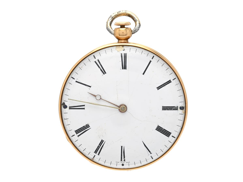 FICKUR, "Louis Moré, a Genève", 48 mm, Boett nr. 7702, 18K guld, cylindergång, nyckeldragare, repeter, skadad urtavla, defekt (går ej, akut servicebehov, se bilder), mynträffling, innerlock i 18K guld, bucklor, ca 1850.