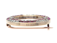 BROSCH, 18K guld/silver, carréslipade rubiner ca 1,50 ctv, gammalslipade diamanter ca 0,75 ctv, Art Deco, 1920-tal, diameter 27 mm, vikt 5,1 g, några stenar har nagg, etui.
