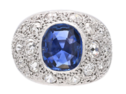 RING, 14K vitguld, obehandlad Burmesisk safir ca 3,70 ct, GCS report 5785-1566, antik-, gammal- och åttkantslipade diamanter ca 2,00 ctv, ca TW-Cr/SI-P, stl 17,25 mm, vikt 9,0 g, flera diamanter har nagg och skador, safiren har inneslutning som når ytan och liten skada på paviljongen.