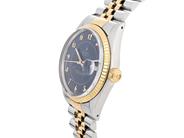ROLEX, Oyster Perpetual, Datejust (T Swiss T), s.k. "Blue Boiler Gauge Dial", Chronometer, Ref nr. 16013, Serie nr. 9415391, Cal 3035, Verk nr. 1516880, Boett nr. 16000, herrur, 36 mm, stål/guld, automatisk, plexiglas, datum, Jubileelänk, viklås, Ref nr. 62510H-K11/455, ca 1986.
