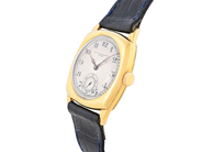 VACHERON CONSTANTIN, Cal RA 10´´´105, Serie nr. 406153, Boett nr. 255079, herrur, 29 x 29 (36) mm, 18K guld, manuell, plexiglas, liten sekundvisare, fasta bandstift, defekt (akut servicebehov), gravyr, läderband, ca 1929, serviceetui, ytterkartong.