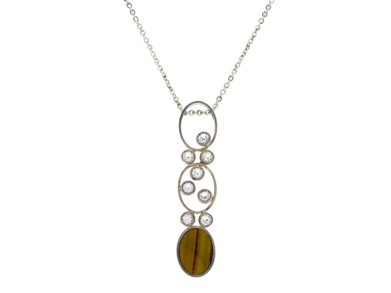 COLLIER, silver, tigeröga, bergkristaller, Kupittaan Kulta, Finland, höjd 7,2 cm, längd 50 cm, vikt 24,1 g.