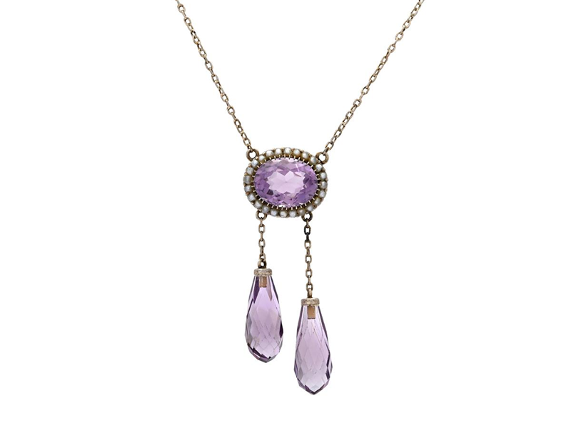 COLLIER, silver, ametister, pärlor, längd 43,5 cm, vikt 8,3 g.