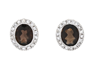 ÖRHÄNGEN, 18K guld, 2 ovalslipade rökkvarts, 36 åttkantslipade diamanter, ca 0,10 ctv, ca W/SI, höjd 7 mm, stift, vikt 1,5 g.