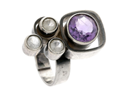 RING, silver, ametist, 3 bergkristaller, Kupittaan Kulta, Finland, justerbar storlek, vikt 13,6 g.