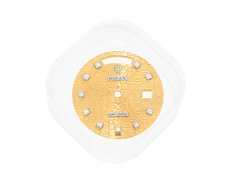 DIAMANTURTAVLA, s.k. "Diamond Jubilee Dial", till Rolex Day-Date, herrur, 10 diamanter (8/8), urtavla (7/10), passar till Ref nr. 180xx, med Cal 3055.