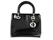 VÄSKA, CHRISTIAN DIOR, Lady Dior Medium, svart lackskinn, silverfärgade beslag, 25x19x12,5 cm, avtagbar axelrem, dustbag, bruksslitage, slitage på hörn.