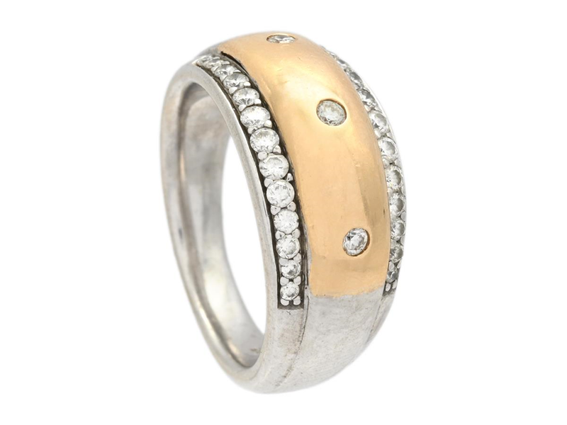 RING, 14K guld / vitguld, 29 briljantslipade diamanter ca 0,40 ctv ca W/VS-SI, stl 18 mm, vikt 14,3 g.