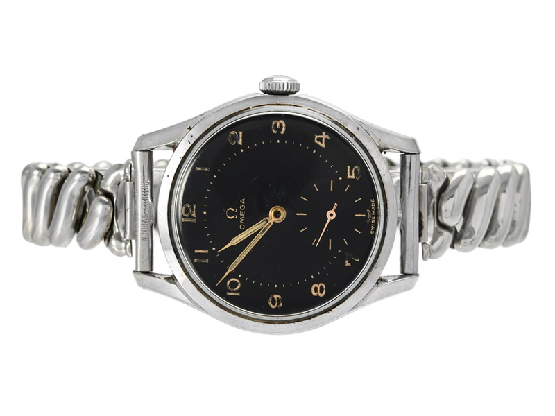OMEGA, herrur, 36 mm, Cal 265, Sere nr. 13048646, Ref nr. CK 2639, Boett nr. 2639-8, stål (Staybrite), manuell, plexiglas, liten sekundvisare, skadad urtavla, ca 1952, metallänk ej original.