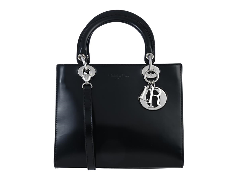 DIOR, VÄSKA, Lady Dior Medium, svart lackskinn, silverfärgade beslag, 24,5x21x10 cm, märkt RU 0948, år 1998, avtagbar axelrem, dustbag. Very Good Condition.