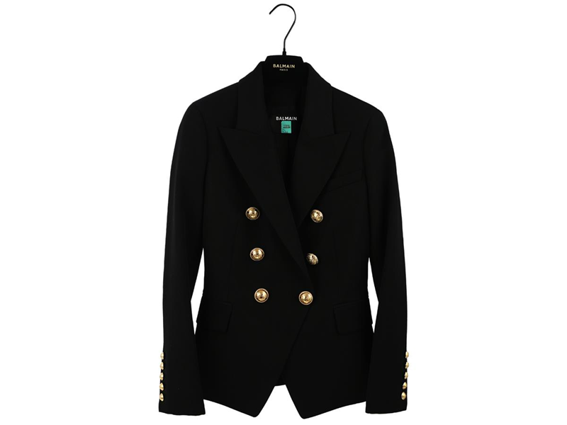 BALMAIN, KAVAJ, Dubbelknäppt kavaj, 100% bomull, innerfoder 52% viscose, 48% bomull, svart, guldfärgade knappar, stl 34 (liten i storlek), galge, klädpåse. Excellent Condition.