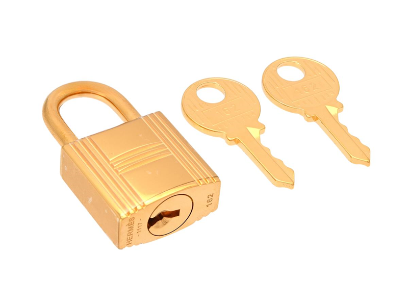 HERMÈS, HÄNGLÅS, guldfärgad metall, 2 st nycklar, Nr 162, plast kvar på hänglås, dustbag. Excellent Condition.