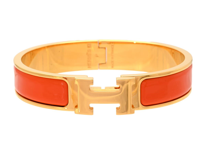 HERMÈS, ARMRING, Clic H Bracelet, orange emalj, guldfärgat spänne, diameter ca 5 cm, märkt P, Made in France, kvitto från 2012, smyckespåse, originalask. Excellent Condition.