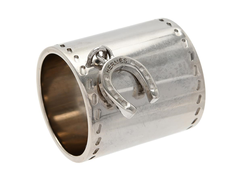 HERMÈS, SCARFRING, Horseshoe Carm, palladium, 2x2,5 cm, lämplig för 90x90 cm scarf, smyckespåse, originalask. Very Good Condition.