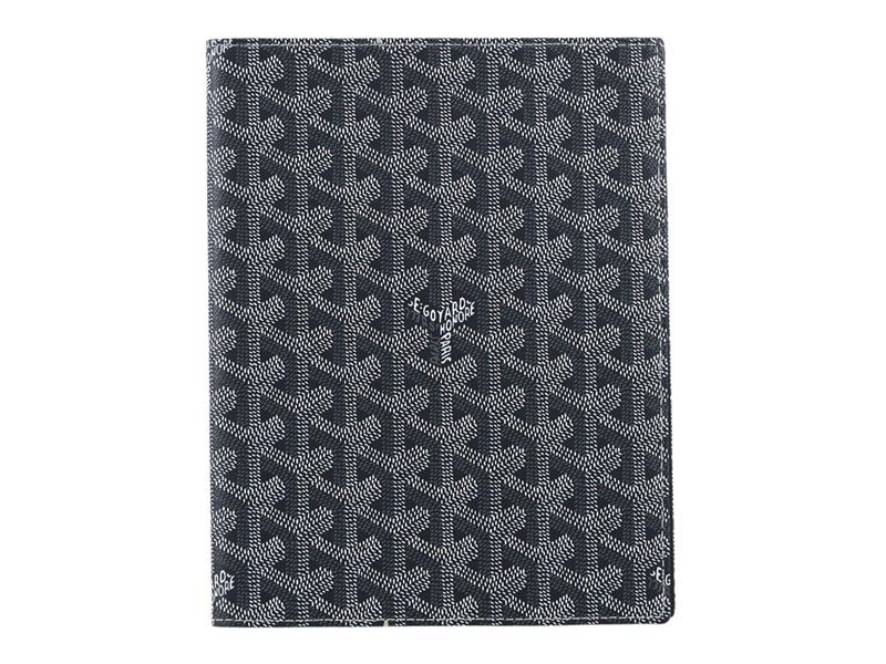 GOYARD, FOLDER, Castiglione Document Cover, Goyardine Canvas, grå, vit, Chevroches kalvskinn, 21,5x17x1 cm. Very Good Condition.