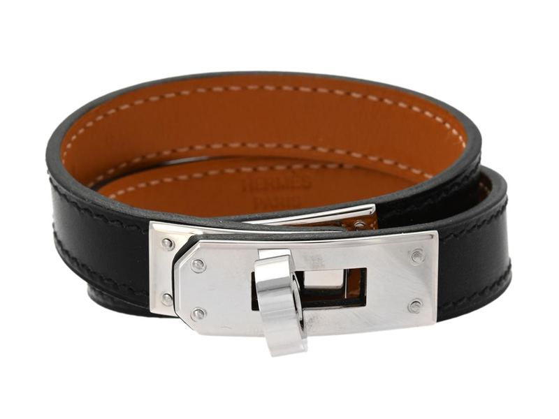 HERMÈS, ARMBAND, Kelly Double Tour Bracelet, svart läder, silverfärgade beslag, längd ca 35 cm, märkt T2, U, år 2022, smyckespåse, originalask. Excellent Condition.