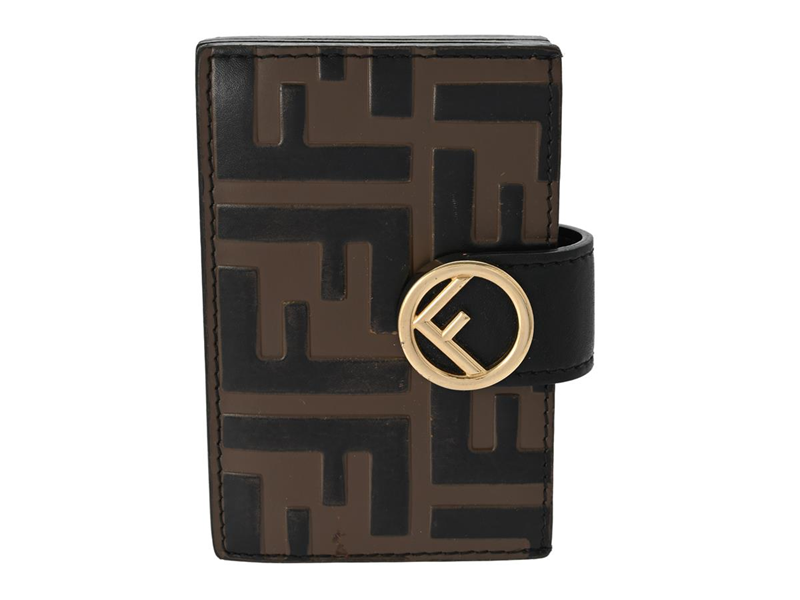 FENDI, PLÅNBOK, Zucca, brun, svart skinn, Embossed F, guldfärgade beslag, 10x6,5 cm, kort, mynt, sedel, dustbag, originalkartong, repor. Good Condition.