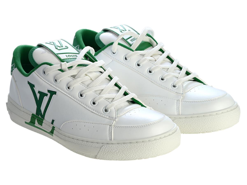 LOUIS VUITTON, SKOR, Sneaker Charlie, vitt läder, grönt läder, Logo LV, stl 41, dustbag. Excellent Condition.