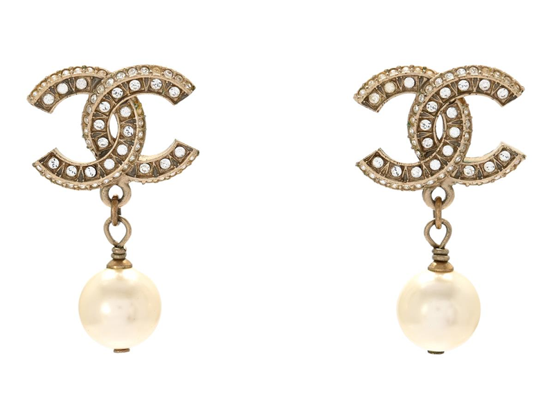 CHANEL, ÖRHÄNGEN, Logo CC, vit strass, imitationspärlor, silverfärgad metall, stift, 1,5x3 cm, vikt 3,8 g, märkt A16 V, år 2016, originalask. Very Good Condition.