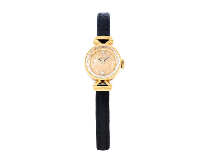 OMEGA, damur, 17 mm, Cal 483, Serie nr. 17859290, Ref nr. OT 10938, Boett nr. 10938 7, 18K guld, manuell, safirglas, diamanter på urtavlan (2 st. 8/8), formverk, ca 1960.