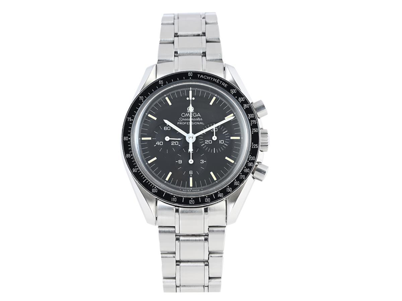 OMEGA, Speedmaster, Professional (T Swiss Made T), "Tachymètre", s.k. "Moon Watch", Cal 1861, Verk nr. 48349406, Serie nr. 48349406, PIC nr. 3570.50.00, Ref nr. SU 345.0022, Boett nr. 145.0022 / 345.0022 (GX), kronograf, herrur, 42 mm, stål, manuell, plexiglas, originallänk, viklås, Ref nr. 1499/842, cert, februari 1997, box (skadad), ytterkartong.