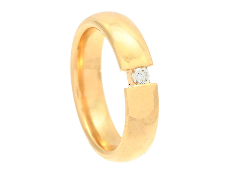 ENSTENSRING, 18K guld, briljantslipad diamant 0,07 ct, ca TW/VS, Schalins, stl 17 mm+, vikt 8,7 g.