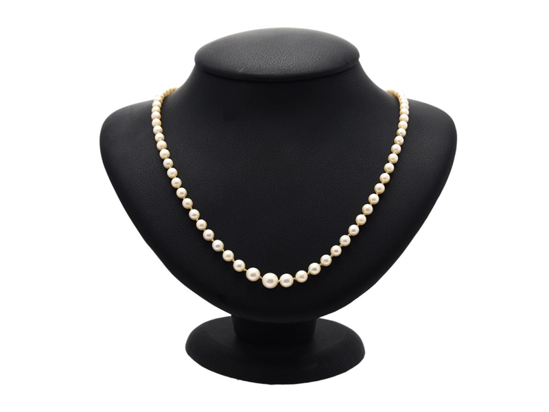 PÄRLCOLLIER, odlade pärlor ca 3,0-7,0 mm, lås i sterlingsilver, längd 59 cm, vikt 14,3 g.