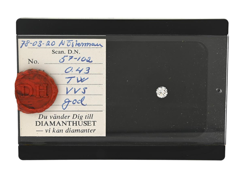 DIAMANT, 0,43 ct, briljantslipad, ca TW/VVS, förseglad.