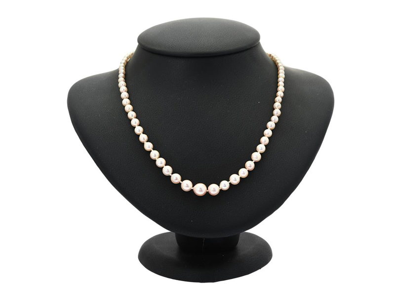PÄRLCOLLIER, lås i silver med markasiter, doserad, odlade pärlor 3,6-7,4 mm, längd 54 cm, vikt 13,7 g.