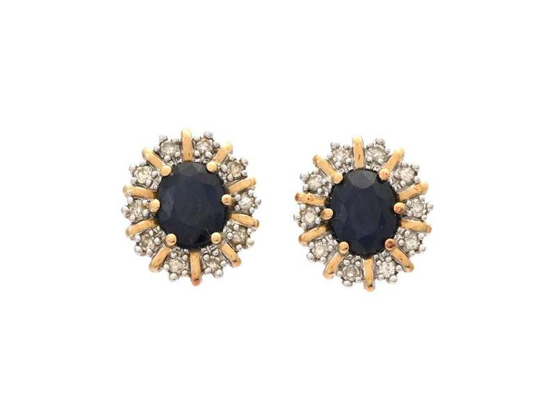 CARMOSÉÖRHÄNGEN, 18K guld, 2 ovalslipade safirer, 20 åttkantslipade diamanter ca 0,12 ctv, ca W/SI, vikt 2,4 g.