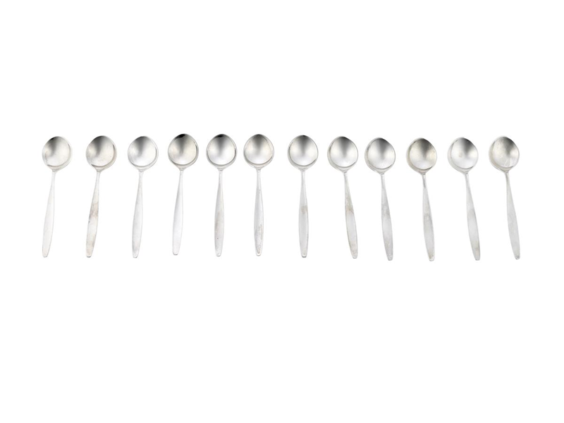 GEORG JENSEN, 12 mockaskedar, Cypress, sterlingsilver, Tias Eckhoff, längd 90 mm, vikt: 101,7 g, etui.