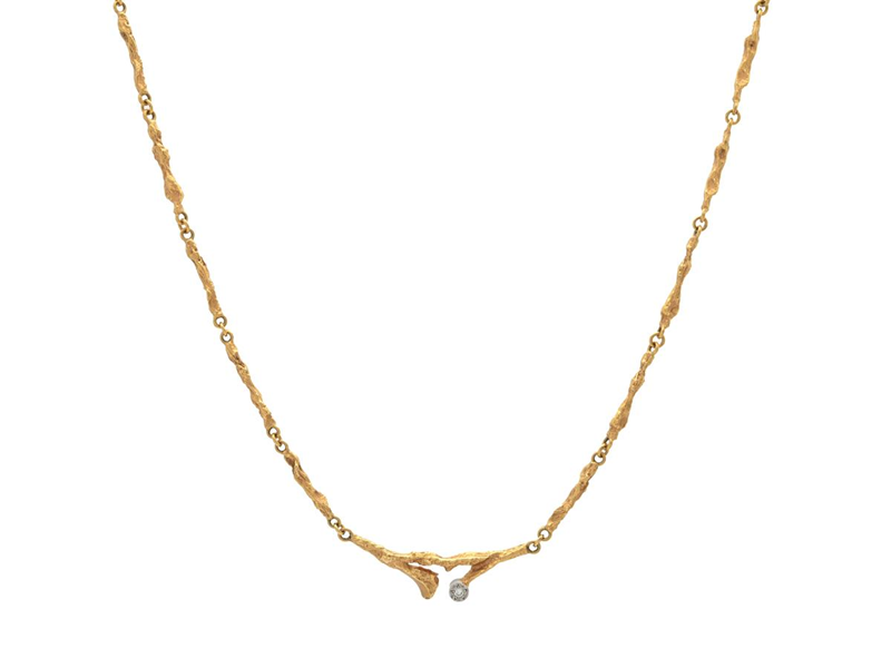 LAPPONIA, collier, Spring Dew, 18K guld, briljantslipad diamant ca 0,02 ct, Björn Weckström, Finland 2009, längd 40 cm, vikt 13,2 g.