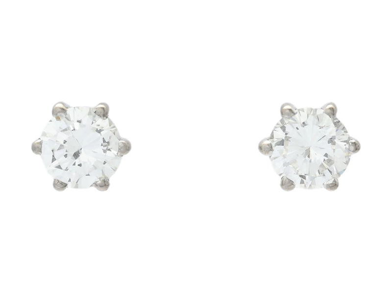 ENSTENSÖRHÄNGEN, 18K vitguld, briljanter ca 1,00 ctv, ca W/SI, stift, vikt 2,1 g, dubbla par snurrebussar.