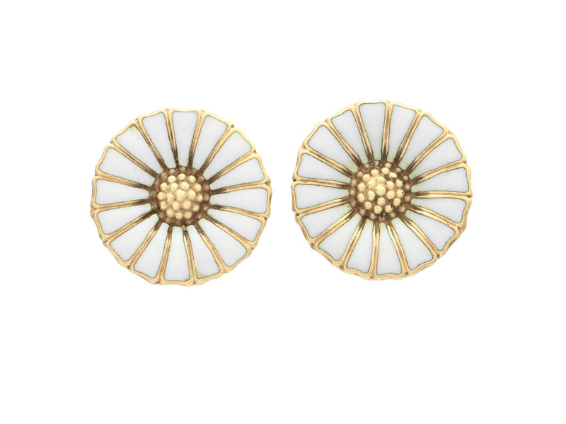 GEORG JENSEN, örhängen, Daisy, förgyllt sterlingsilver, vit emalj, stift, vikt 2,6 g, originaletui.