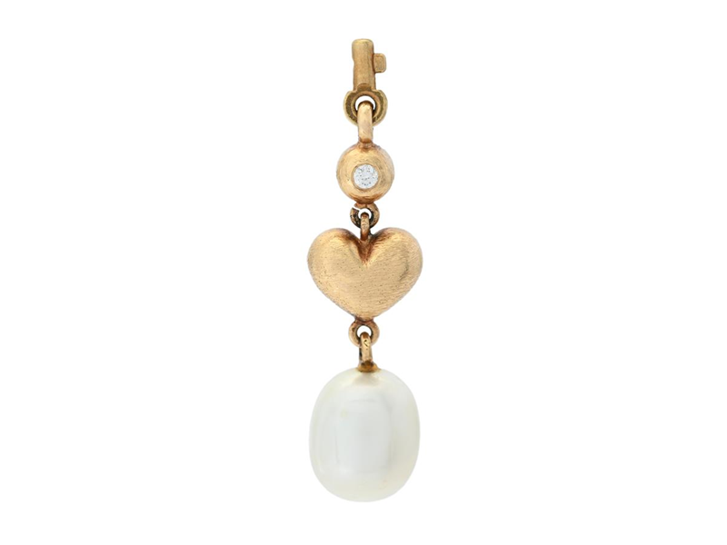 OLE LYNGGAARD, nyckelhänge, 14K guld, briljantslipad diamant ca 0,02 ct, odlad sötvattenspärla, höjd 32 mm, vikt 3,8 g.