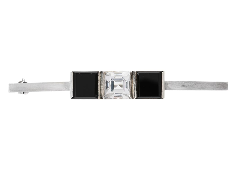 WIWEN NILSSON, brosch, silver, bergkristall och onyx, signerad, Lund 1964, längd 65 mm, vikt 7,5 g, mindre repor (d)
