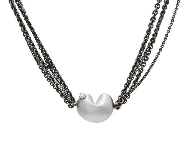 OLE LYNGGAARD, lås, 18K vitguld, briljantslipad diamant 0,09 ct, ca TW/VS, 22,5x16,5 mm, vikt 13,2 g, COLLIER, fyraradigt, oxiderat sterlingsilver, längd 44 cm, vikt 33,4 g, dobbar.