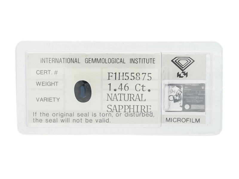 SAFIR, ovalslipad, 1,46 ct, IGI certifikat F1H55875, förseglad.