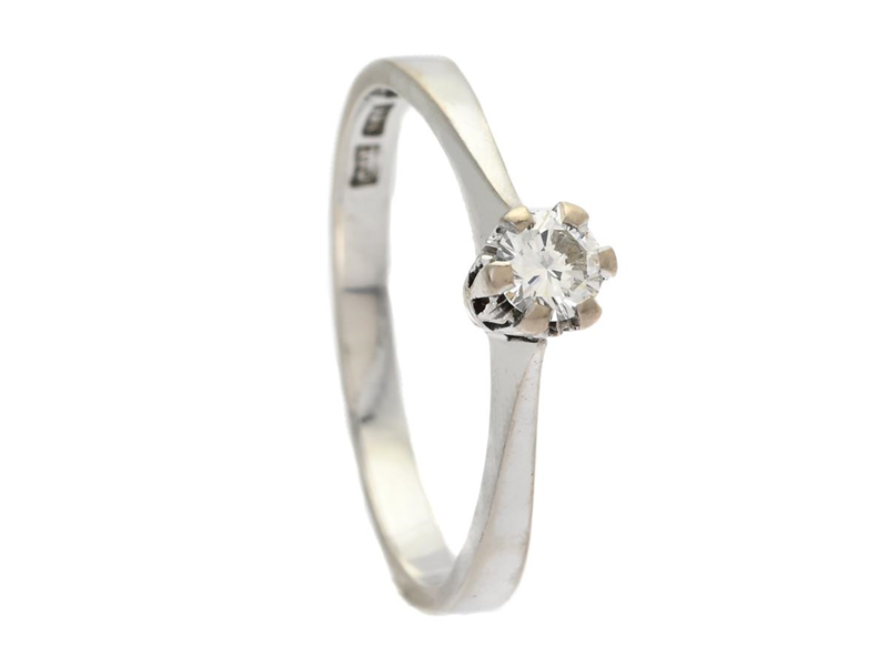 ENSTENSRING, 18K vitguld, briljantslipad diamant ca 0,20 ct enligt gravyr, ca TW-W/VS-SI, stl 17,75 mm, vikt 2,8 g, sliten rodinering.