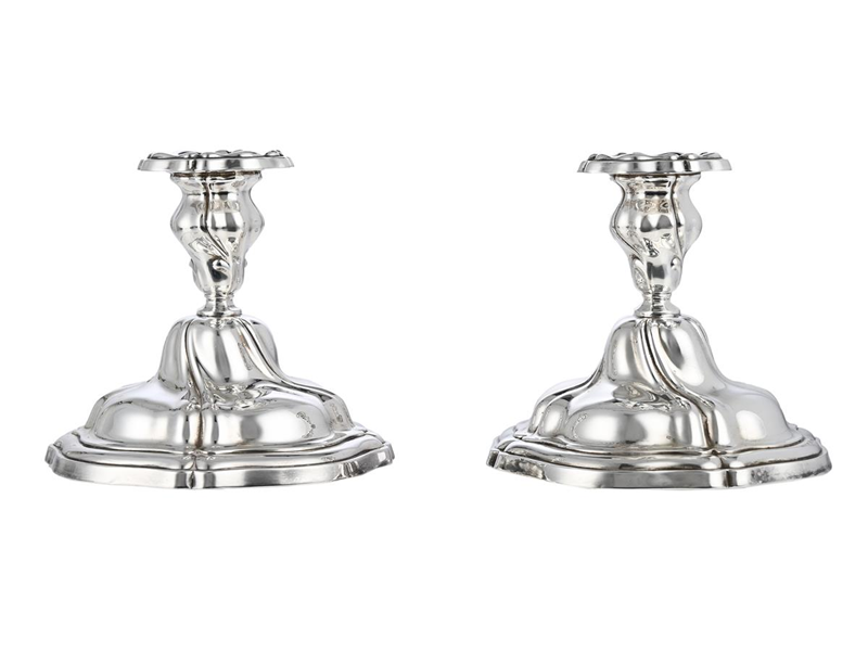 LJUSSTAKAR, ett par, silver, barockstil, Theodor Olsens eftr, Norge, höjd 12 cm, vikt 1355 g, fylld botten.