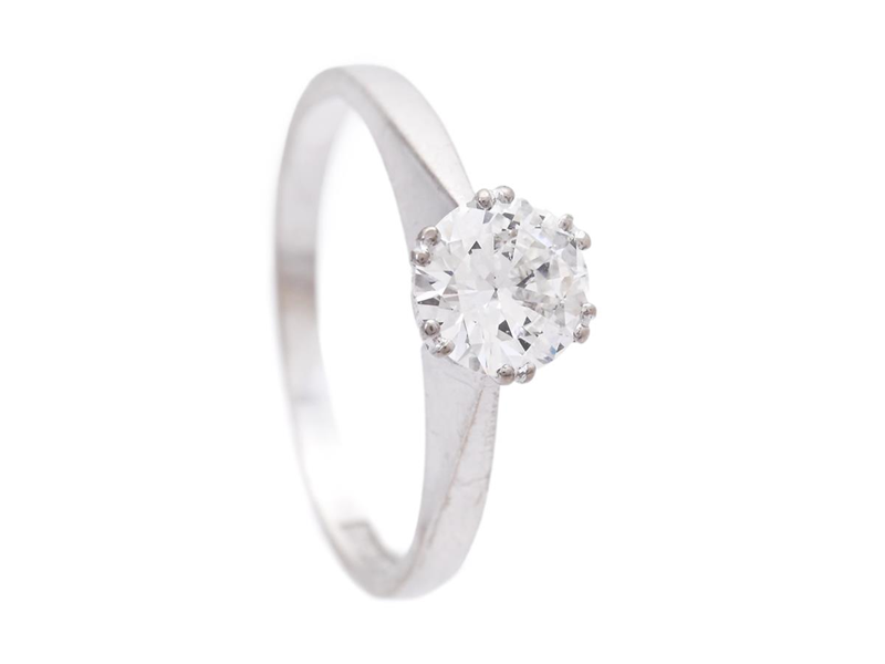 ENSTENSRING, 18K vitguld, briljantslipad diamant 0,66 ct enligt gravyr, ca W/VS, stl 16,75 mm, vikt 3,0 g, diamant med nagg på kuletten och rondisten.